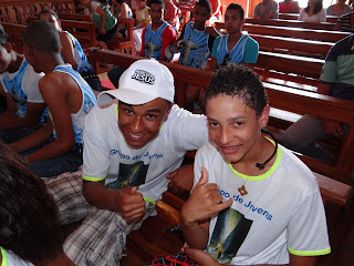 Gean, 22 anos – grupo de jovens Anjos de Deus da cidade de Carrancas/MG ao lado direito Thiago, 14 anos.